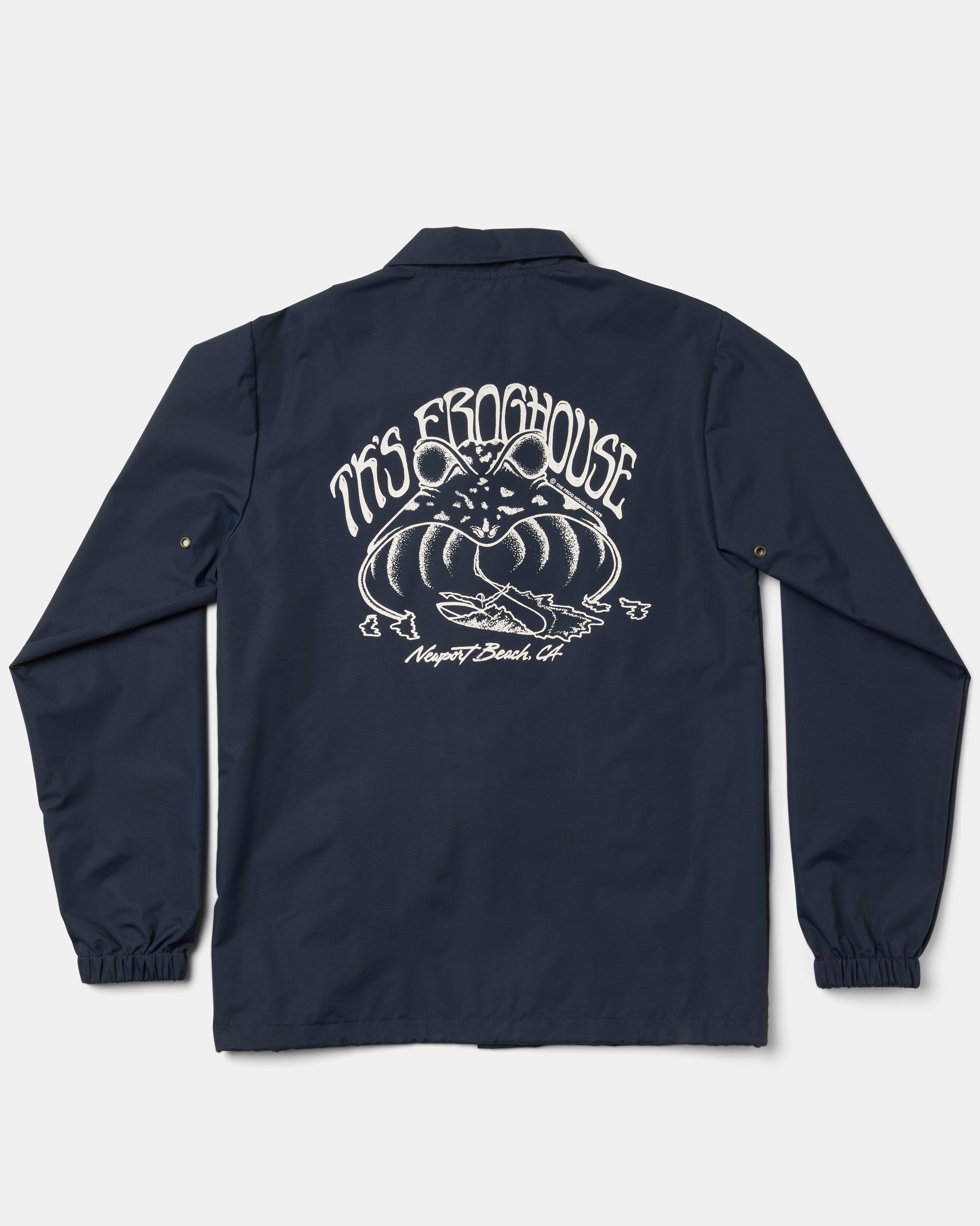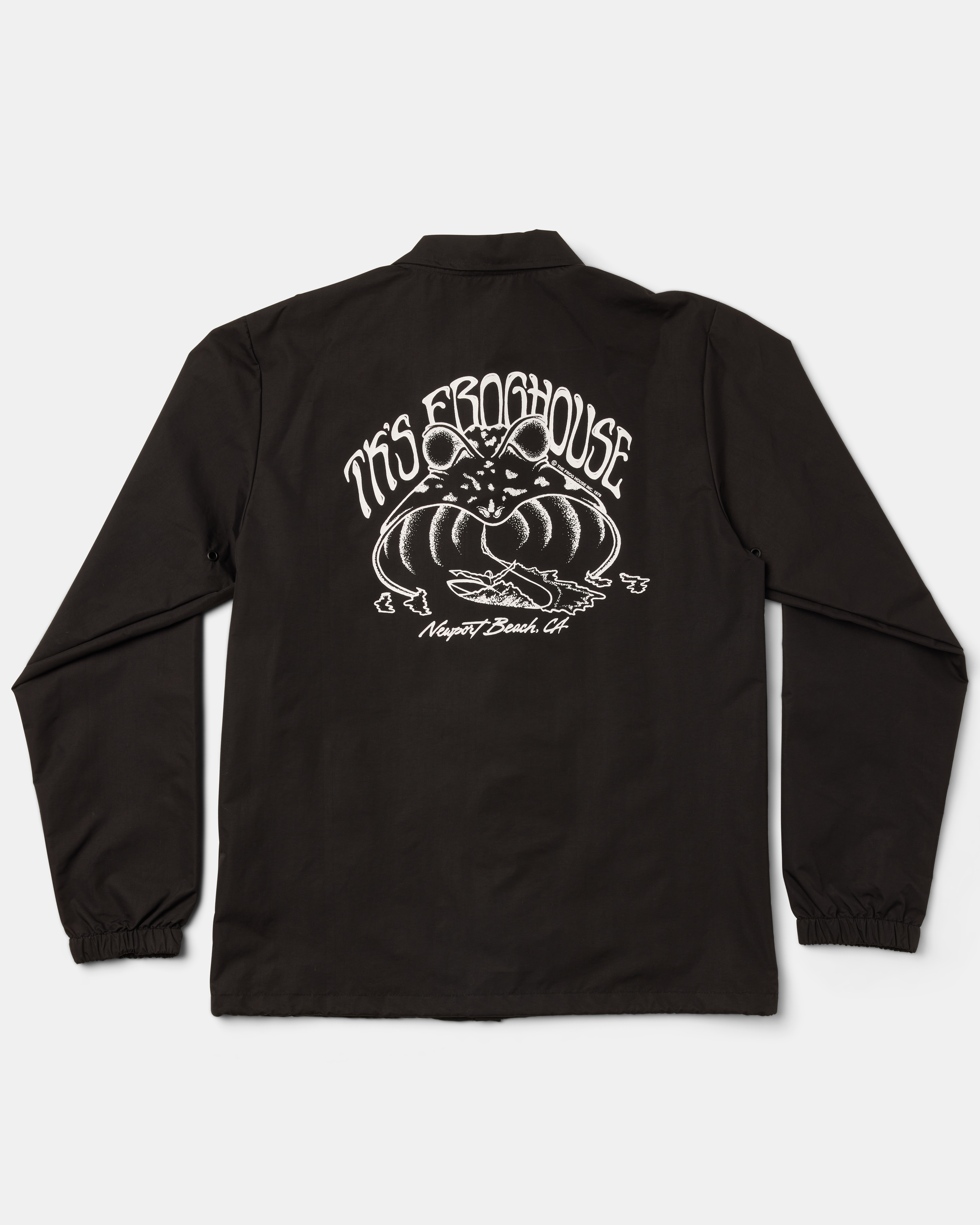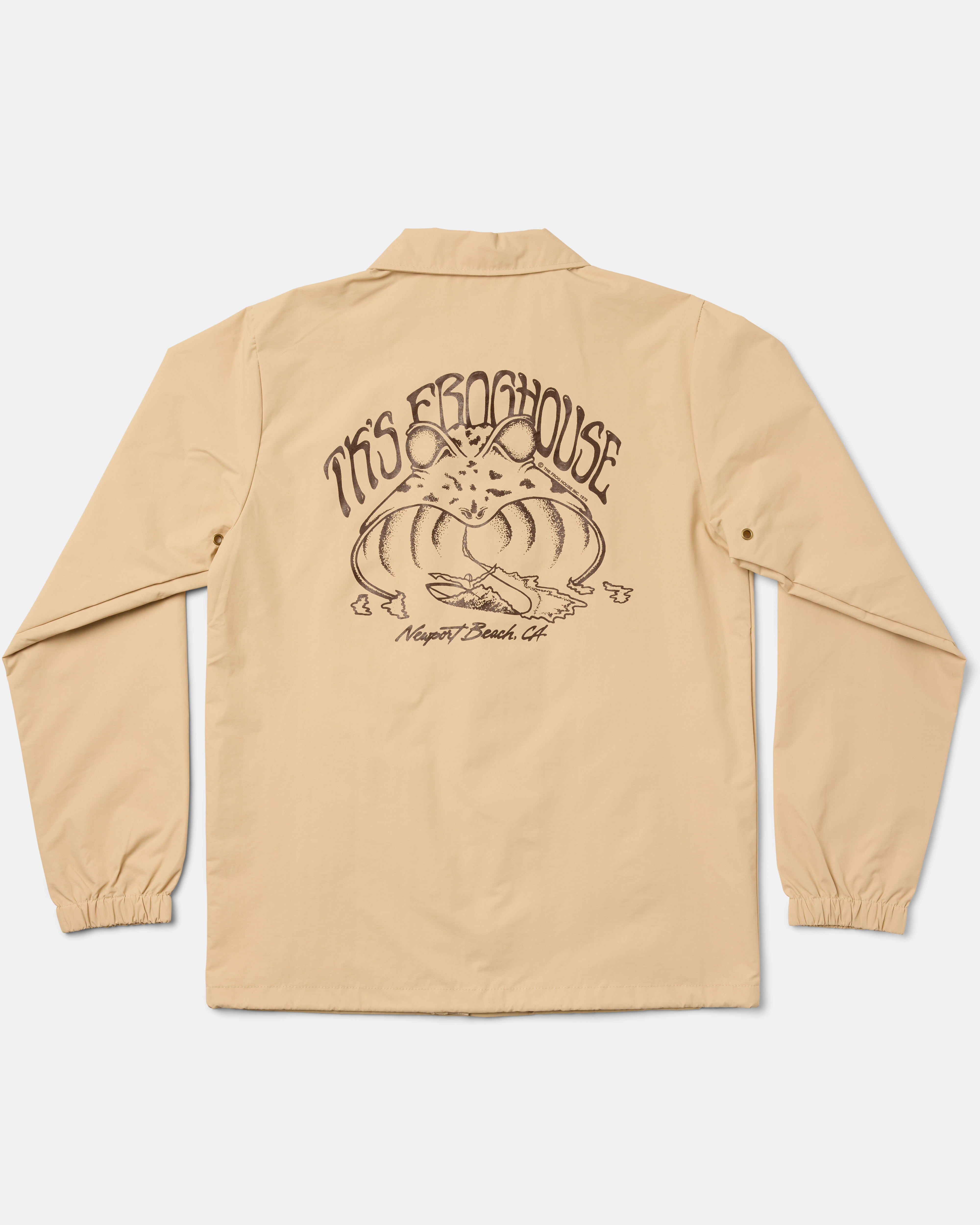This Frog House nylon windbreaker coaches jacket has waterproof nylon fabric with snap front closure. The Nylon exterior fabric is coated with a 100% water proof coating... however, we give this jacket a Water Resistant rating since the seams are not waterproofed, which may allow water to eventually enter through the seams or snap front closure when exposed for extended periods of time in a downpour.