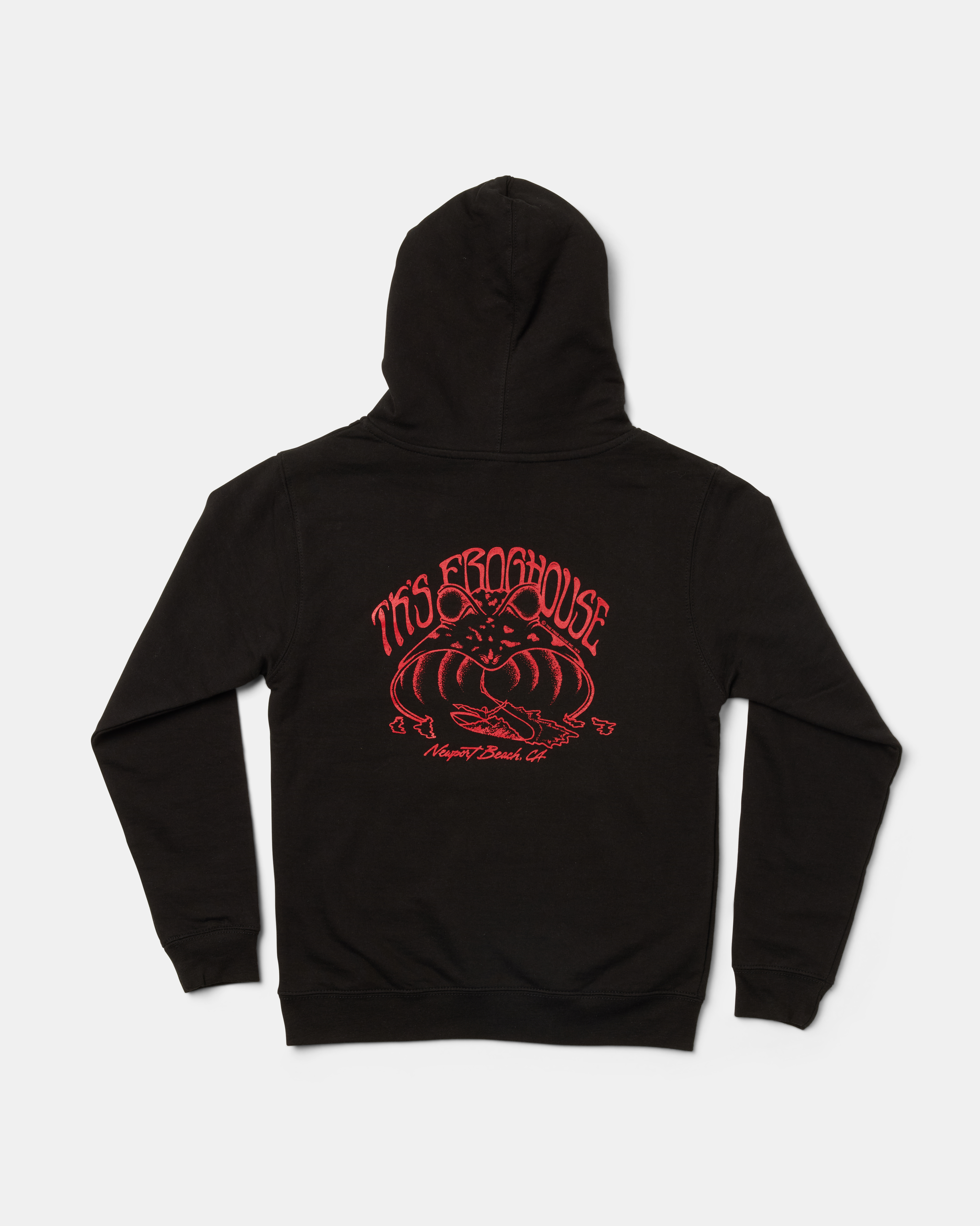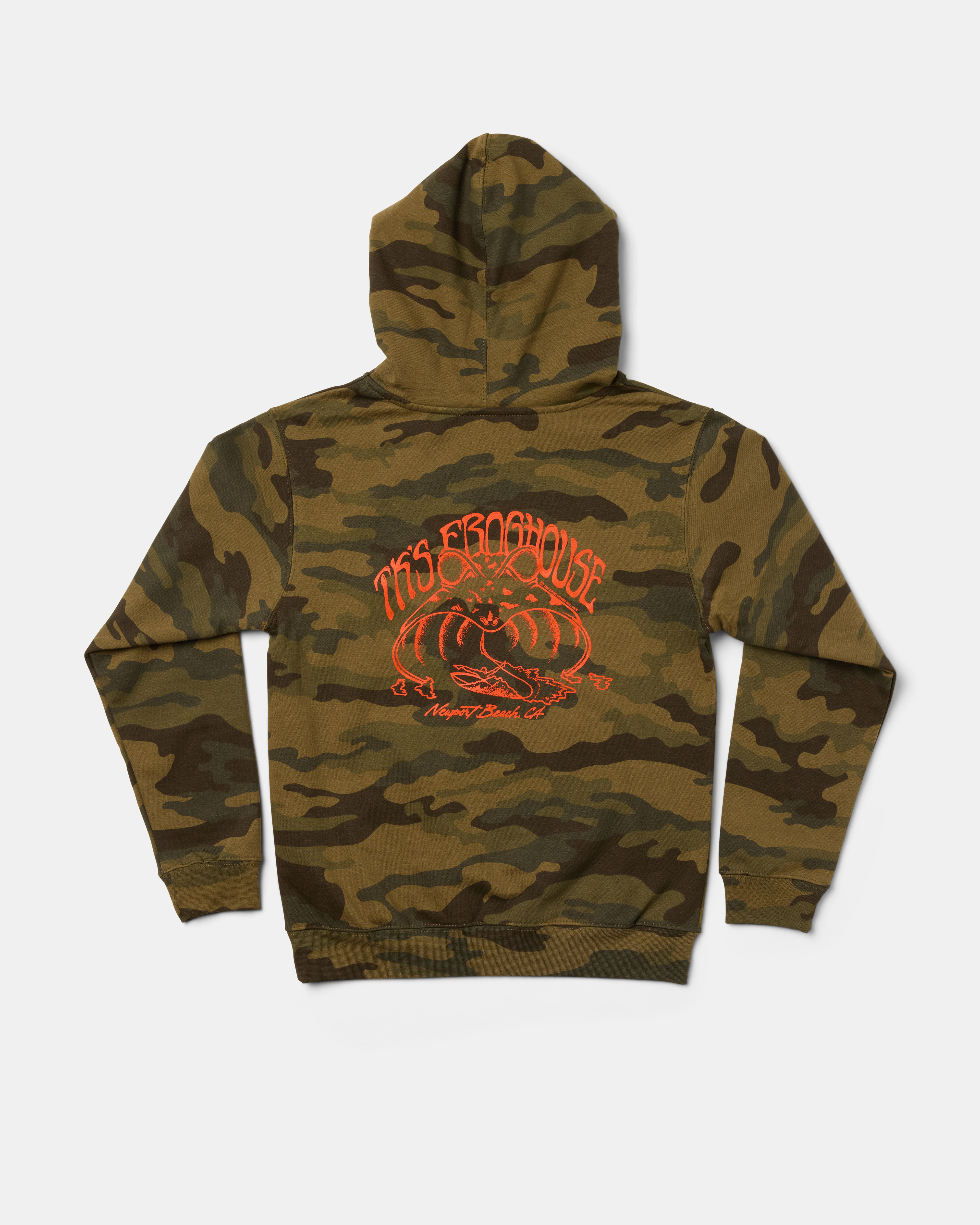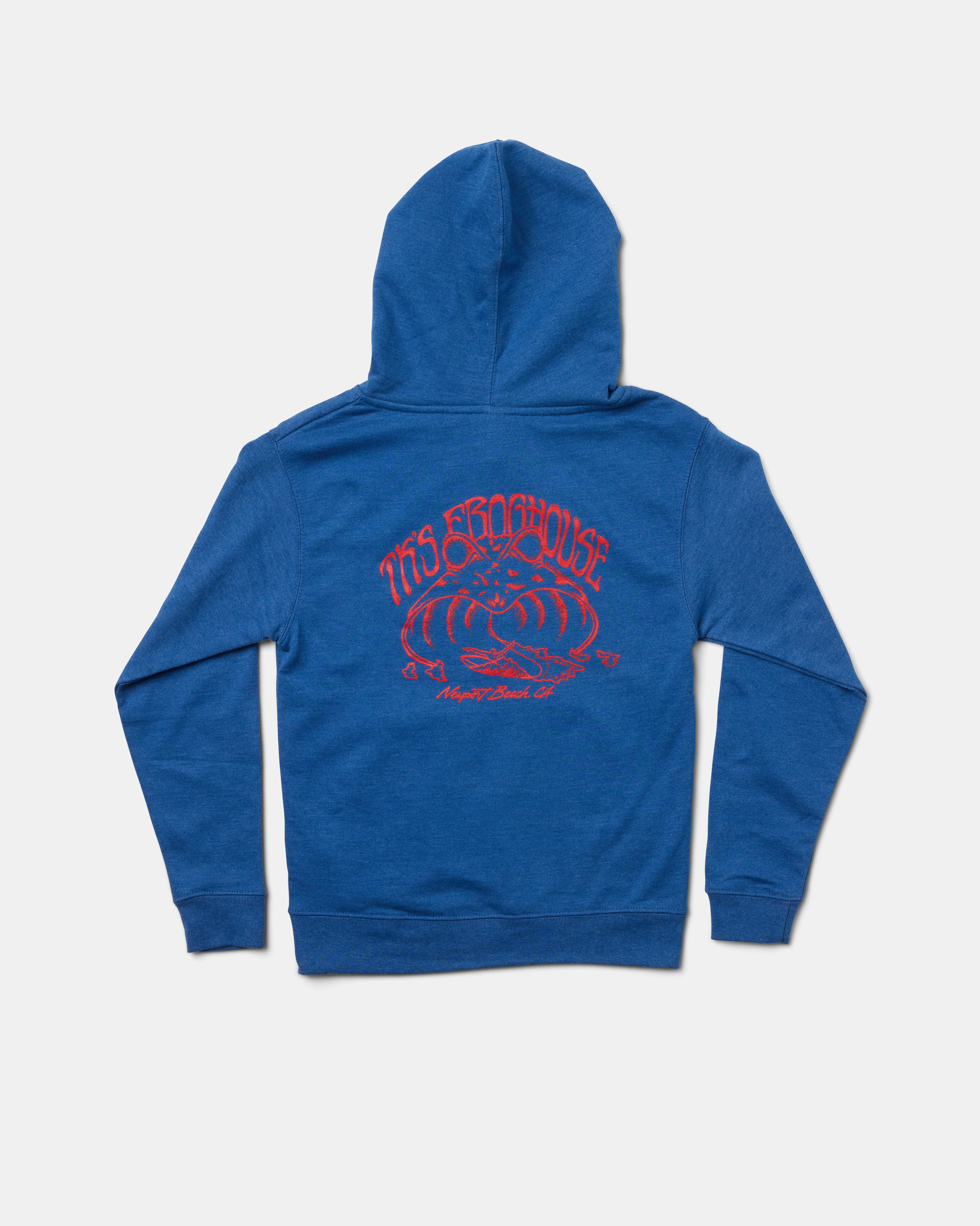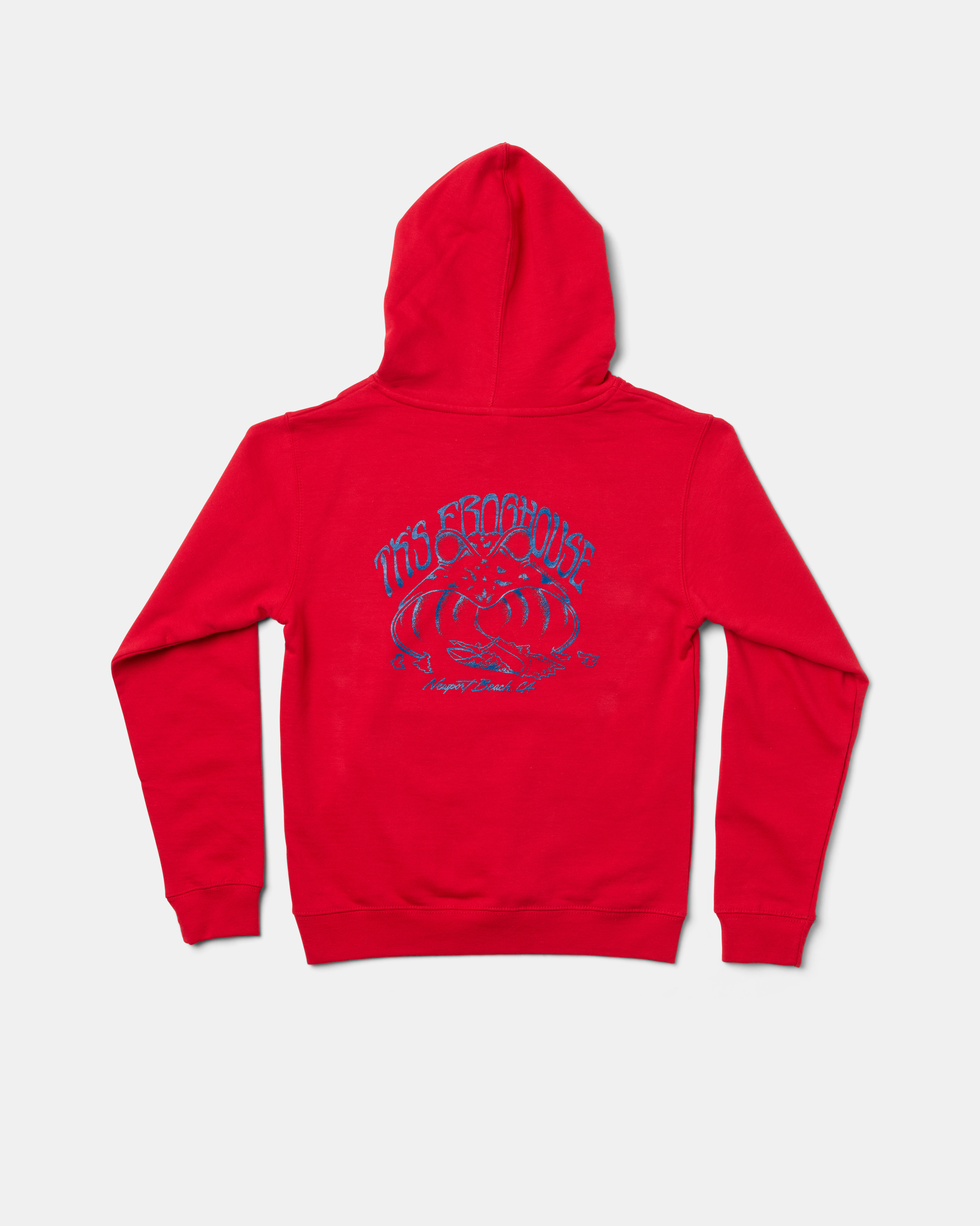The Frog House youth pullover hooded sweatshirt made with mid-weight fabric and offers generous youth spec. Features jersey lined hood, 1x1 ribbing at cuffs and waistband.
