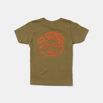 Self 3/8" shoulder-to-shoulder binding. Side-seamed. 1x1 CVC baby rib set-in crew neck with front cover stitching. Hemmed sleeves, side-seamed with a straight bottom hem. Tailored for youth with a classic fit.